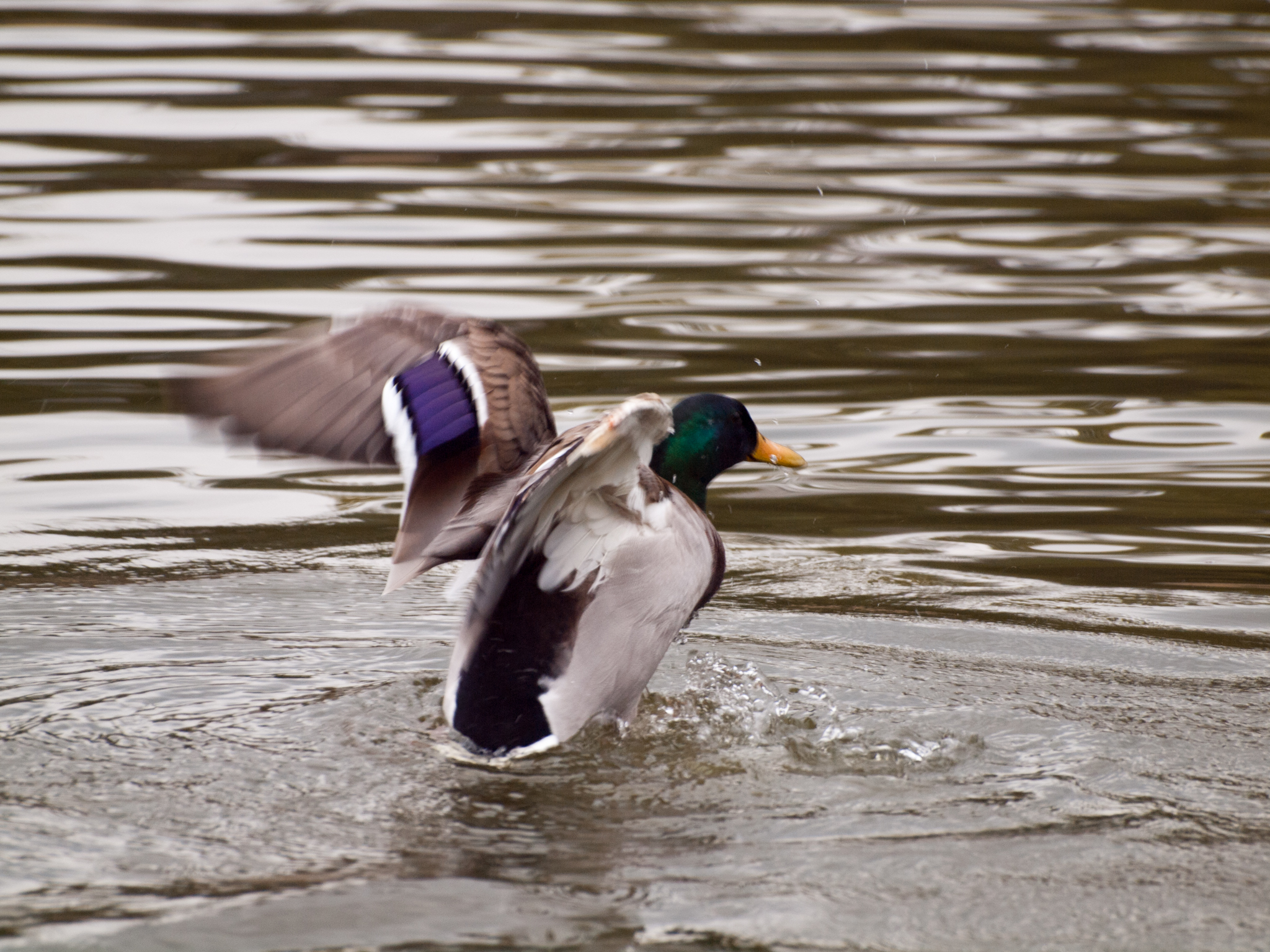 カモが羽ばたいたので、慌ててシャッターを切りました。急いで撮った割には、良い感じで撮れたような感じがします。