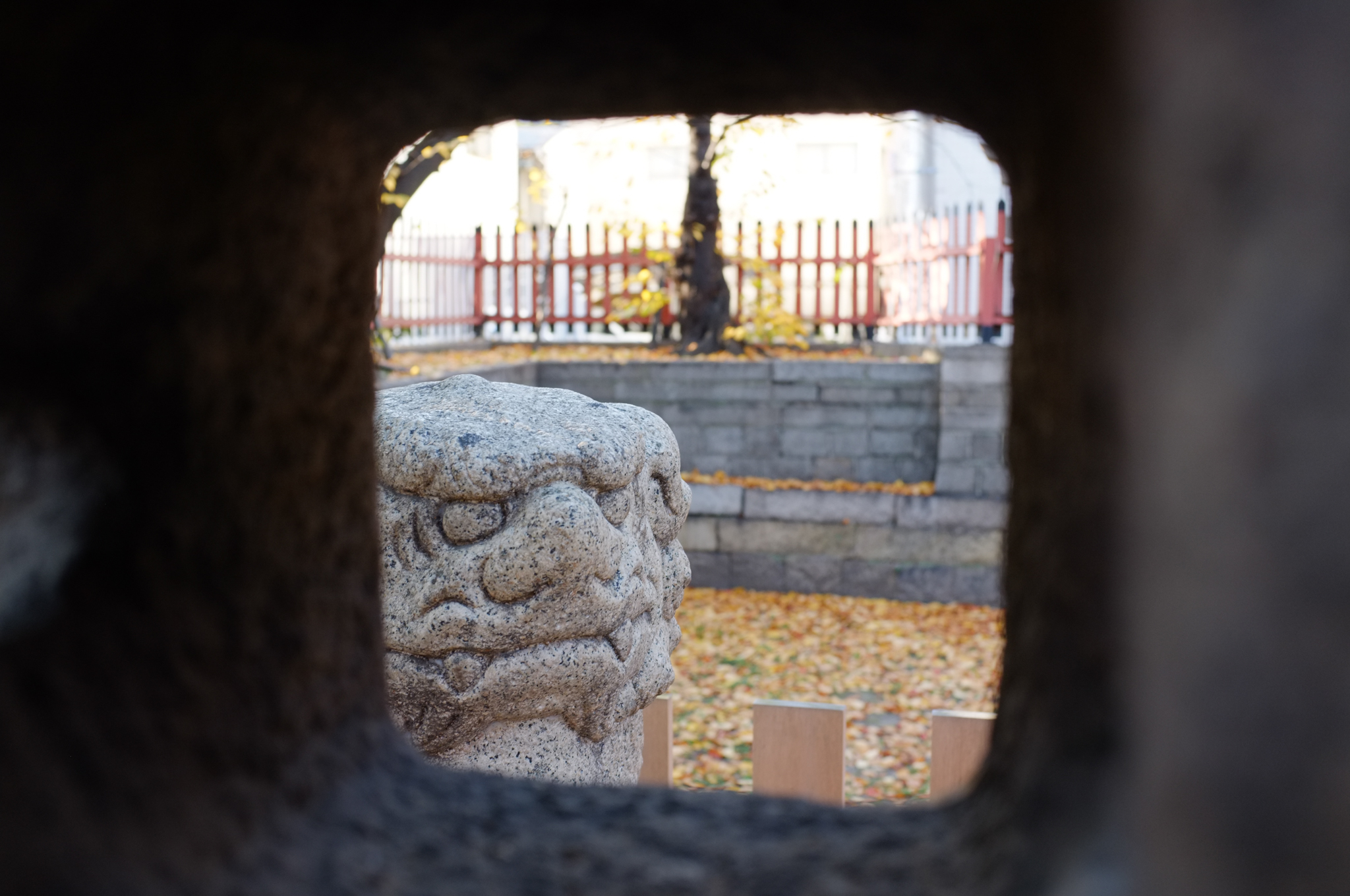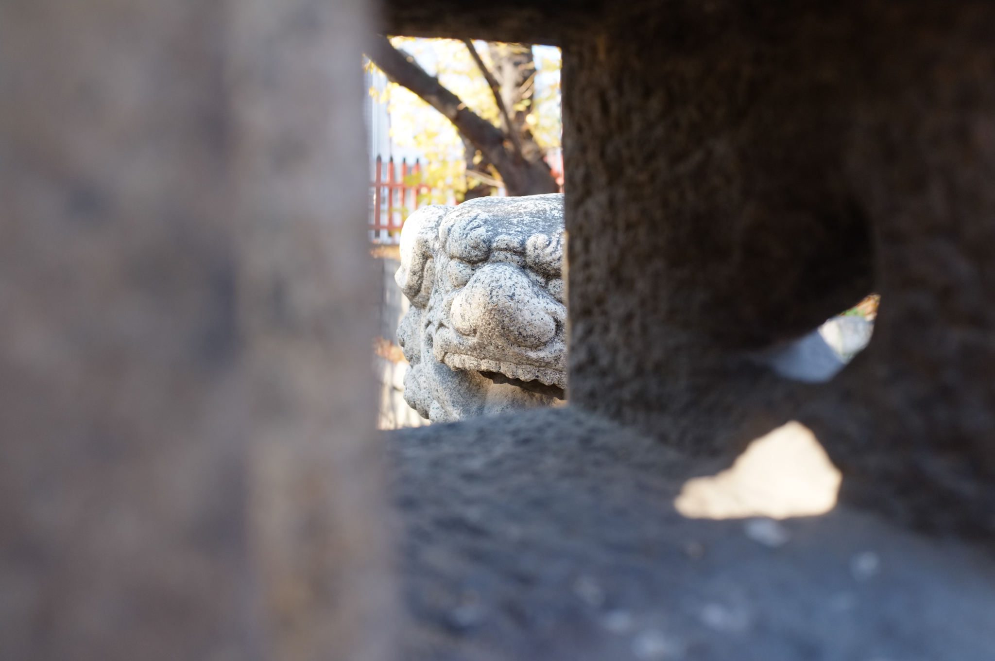ここの狛犬さんは何度も撮らせてもらっているので、すこし変わったカットで遊んでみました。