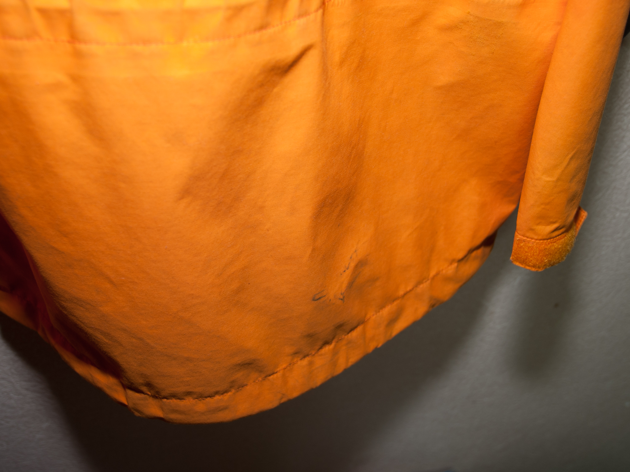 いつのまにか油汚れか何かがついてしまっています。これは、クリーニングに出しても洗濯しても落ちませんでした。今回NIKWAXで手洗い洗濯するのですが、この汚れは落ちないでしょう。